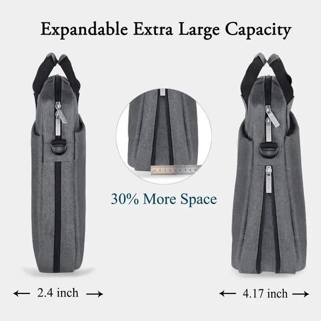 Expandable Capacity(2.4-4.17 inch): One unique features of this15.6 inch laptop bag is invisible expansion zipper at the bottom, which can be