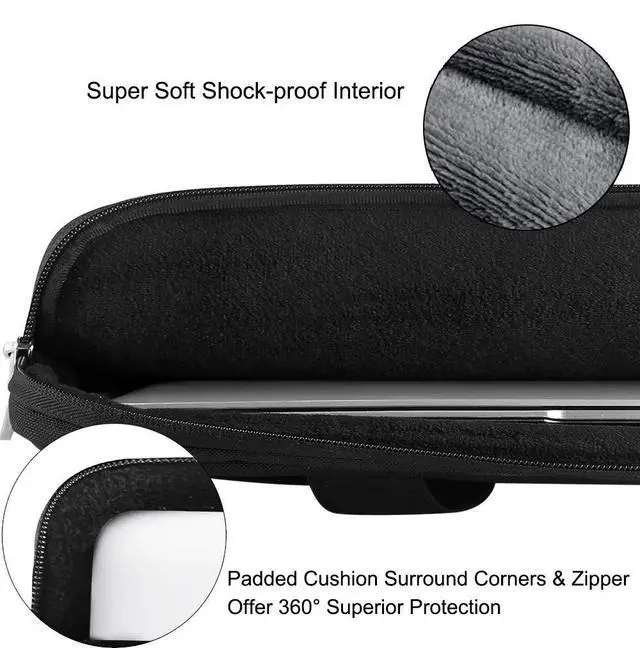 Upgraded Protection: Thick foam and super soft velvet lining surrounded all the laptop case include zipper edge, interior border. Enhanced thicker cushion at the corners provide your computer 360 protection from accidental scratch, bumps, shocks and hits. Laptop case bag surface adopts waterproof oxford, which obstructs water and vapor effectively, don't worry getting your valuable macbook wet from splashing water or rain.