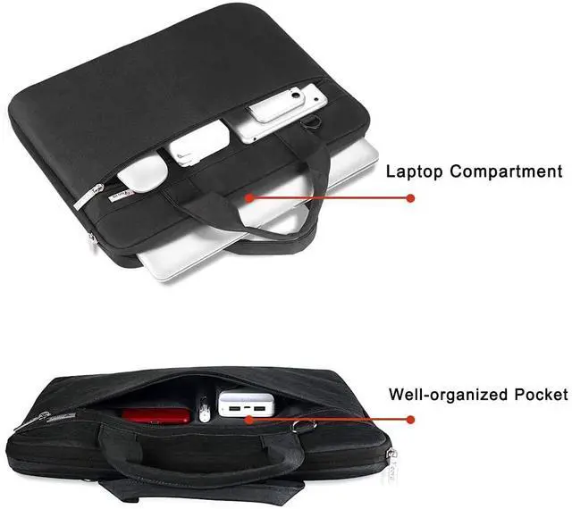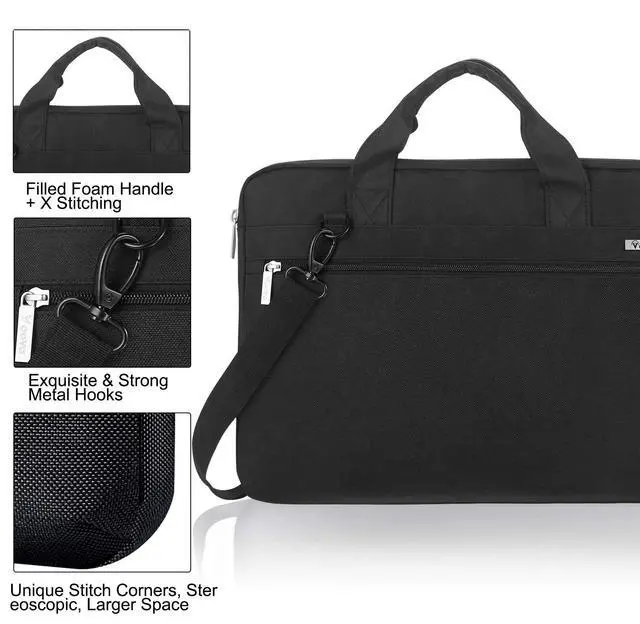 ^^ Easy to Carry: Compact laptop sleeve bag equipped with an removable and adjustable shoulder strap and padded handle, you can easily swift briefcase to a shoulder bag or hand bag based on you need. Smooth exquisite zippers and metal hook & loop, extrally X stitching on all stress points to strengthen, so the tote bag does not fall apart when carrying heavy goods.