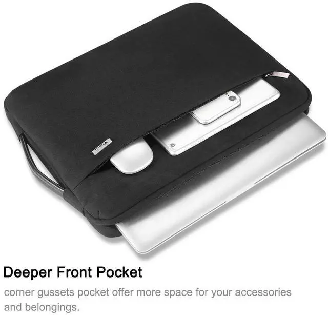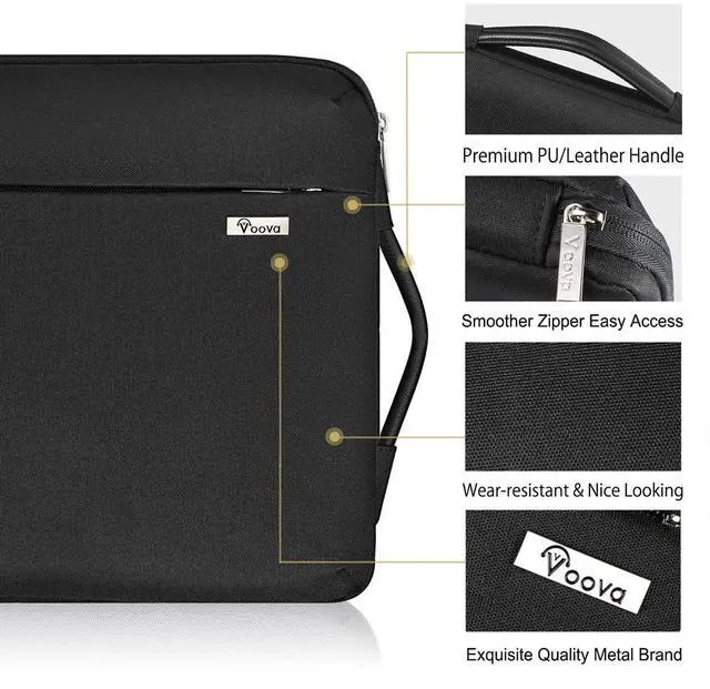^^ Practical & Attractive: Laptop carrying case adopt premium PU/leather handle, it makes you easier and comfortable to carry for a long time even load heavy computer/essential. Top-loading zipper on the cover bag slide smoothly like butter and allows convenient access to your laptop.