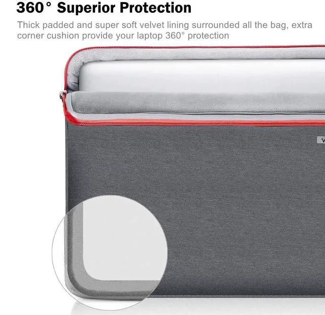 Upgraded 360Protection: Thick foam and super soft velvet lining surrounded all the bag include zipper edge, interior border. Extra thicker cushion at the corners provide your laptop 360 protection from accidental scratch, bumps, shocks and hits. Case surface is made of waterproof oxford, which obstructs water and vapor effectively. Don't worry about getting your valuable macbook wet from splashing water or rain. ^^