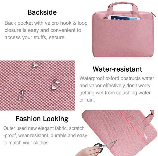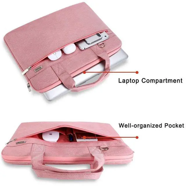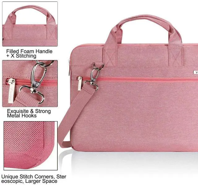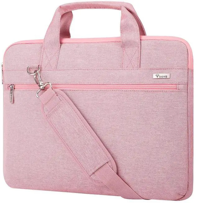 Voova Laptop Bag 13-14 Inch, 360 Protective Laptop Case Sleeve with Shoulder Strap Compatible with Macbook Air 13, MacBook Pro 13/14, Waterproof Computer Bag Slim Briefcase for Men Women, Pink