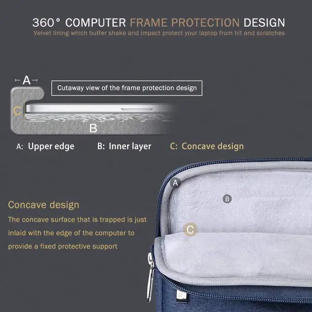 ^^ Ultra-slim & Lightweight - Slim, portable and lightweight to take alone, or slide it into your briefcase, backpack or any other bag, perfect for business, school or travel. ^^ Shockproof - multiple layers protection, polyester foam padding layer and nylon fabric lining for bump and shock absorption, protect your computer from accidental scratches.