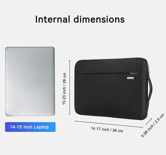 ^^ Internal Dimensions: 14.17 x 10.24 x 0.98 inch / 36 x 26 x 2.5 cm (max device), compatible with MacBook Pro 14 inch M3/M2/M1 Chips Pro/Max 2023-2021, 15-inch New MacBook Air M2 A2941 2023, 15 MacBook Pro A1990 A1707, 14.4 -15 Inch Microsoft Surface Laptop /Studio 5/4/3, Dell XPS 15 / Vostro / Chromebook 14, 14 HP Stream/EliteBook, Asus Zenbook/VivoBook 14, ThinkPad/Ideapad/Flex/Yoga 14, Acer Chromebook Swift 14 and fits more similar size notebook. ^^ Compact and Easy to
