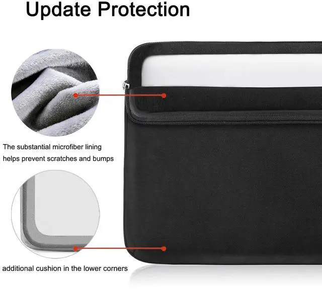 Upgraded 360Protection: Thick foam and super soft velvet lining surrounded all the laptop sleeve include zipper edge, interior border. Extra thicker cushion at the corners provide your laptop 360 protection from accidental scratch, bumps, shocks and hits. Case surface is made of waterproof oxford, which obstructs water and vapor effectively. Don't worry about getting your valuable macbook wet from splashing water or rain. ^^