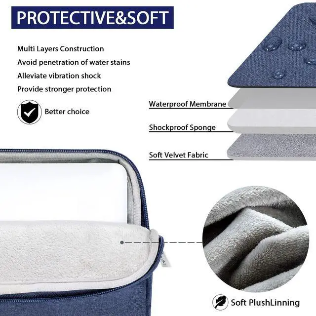 • Well Protective - The outer layer is made of premium oxford,durable,water resistant and dustproof.and the inner material is thickened soft velvet lining which protects your laptop from bumps, shocks and accidental scratches