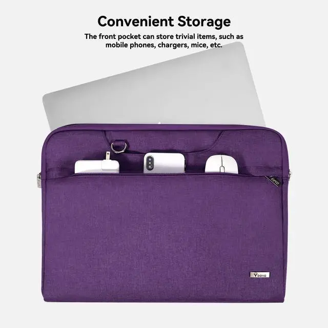 Purposeful & Practical Design: Voova sleek laptop carry case is lightweight as smart as it looks, carrying option include detachable shoulder strap and top suppressed handle, handles can be tuck away in both side pocket and hidden when not need, the bag can be used as a stand-alone sleeve into backpack, briefcase or luggage, it is a perfect ideal for business and travel. ^^ Compact Form Offers Ample Space. Top-load zip on the bag slides smoothly and allows easy access to your laptop computer. Convenient two sides front pocket stores power supply, pens, mice and other accessories. Plus, front zipper pocket provide your personal valuable essentials in safe place, such cell phone, card etc. with a quick access and keep always on hand, it is a great choice wherever youre heading to the office or working from the road.