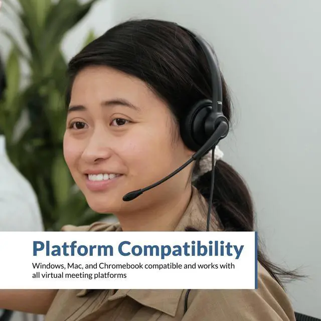 COMPATIBLE WITH ALL MAJOR PLATFORMS: Perfect for productivity. This wired headset works seamlessly with Microsoft Teams, Zoom, Slack, Google Meet, WebEx, RingCentral, Avaya, Genesys, and Nice. Ideal for hybrid workers, call centers, and remote teams who need reliable headsets with microphone for work.