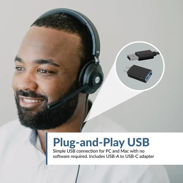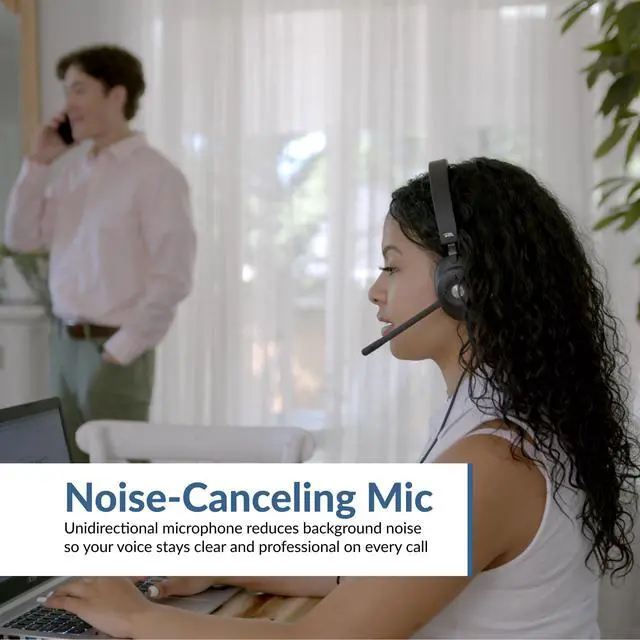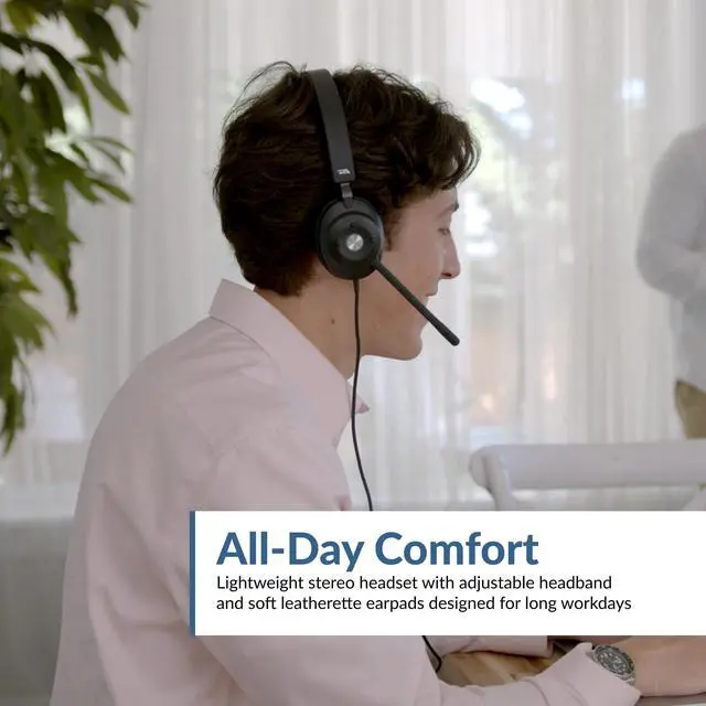 HIGH QUALITY STEREO SOUND Professional stereo USB headset with microphone for high quality stereo sound for both speech and music. Passive Noise Cancellation minimizing unwanted noise while providing a secure and comfortable fit for all day wearing. Perfect for work at home or the office. ^^ CRISP AND CLEAR COMMUNICATONS Our Microphone design ensures your calls are clear. Unidirectional noise cancelling Microphone minimizing ambient noise while speaking or recording. The integrated Busy Light allows you to notify others to do not disturb. ^^ CONVENIENT CONTROLS Easy access to controls on earcup for Volume Up, Volume Down, Microphone Mute, Play/Pause and Busy Light.