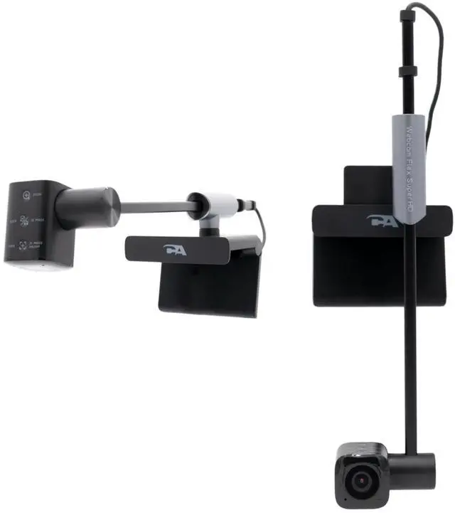 It features auto or fixed focus with low-light correction, includes a wide diagonal field of view, and dual omnidirectional microphones. ^^ Easy to use Plug-and-play USB-A webcam with no software or drivers to update and install. Three buttons allow for simple setting of desired zoom up to 5x, auto or fixed focus, and image orientation, requiring no additional software. Easily rotatable arm is 7.48 inches, allowing for perfect placement in Center View or Table View. Compatible with PC, Mac, and Chromebook. ^^ Includes Cyber Acoustics CA Essential Webcam Flex and User Guide.