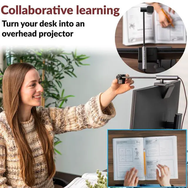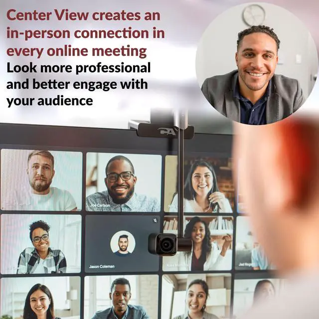 Elevate your professional appearance with this center screen webcam Recreate the in-person experience with a webcam that solves modern meeting challenges. With Center View Mode maintaining eye contact with your audience is effortless, enabling you to remain fully engaged. Give powerful presentations, conduct authentic live interviews, lead captivating webinars and livestreams, or present engaging demonstrations, via a simple, unobtrusive webcam with 5MP super HD 1080p video quality. ^^ Table View Mode With Table View Mode you can demonstrate lessons, share documents or objects, level-up your livestreams, and more, by turning your desktop into a projector.