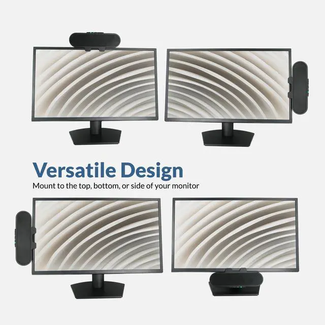 USB-C or USB-A and Bluetooth connectivity; connect to desktop or laptop with USB cable; connect to smartphone with Bluetooth when connected via USB ^^ Attaches to monitors up to 2 inches thick; accessible controls for switching between USB and Bluetooth sources; includes multi function button for play and pause; volume and mic mute with LED indicator ^^ 20W Power Output; Rear-facing bass radiator; accurate mids; clear highs ^^ Simultaneous connection to PC or Mac via USB; connect to smartphones via Bluetooth; for hands free calls or virtual meetings; Smart Voice Enhancement Technology minimizes background noise ^^ Easy setup plug and play design and includes USB C to USB A adapter and user guide; Our US based customer service team is here to help; Contact us through