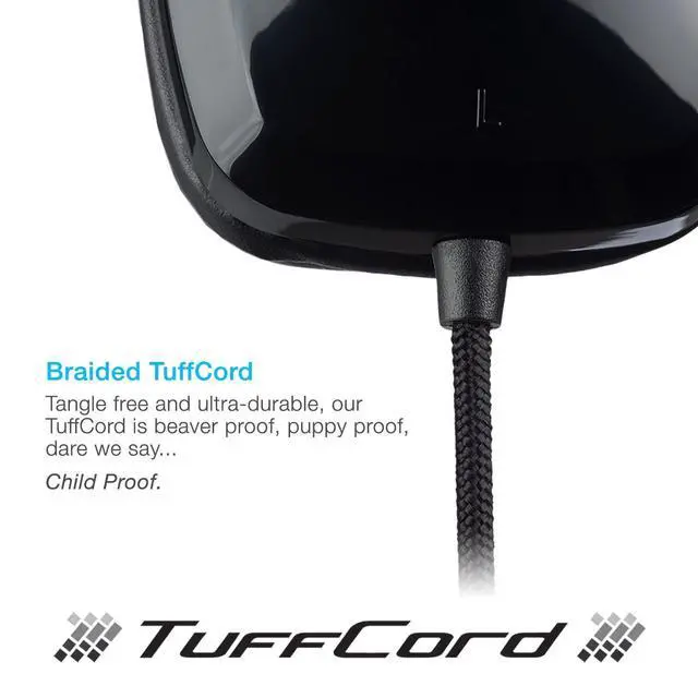 ^^ DURABLE DESIGN: Built for the most demanding environments, the AC-6008 headset headband can be bent, twisted, or rolled without breaking, while the Nylon braided TuffCord can withstand twisting, chewing, or being rolled over by chairs.