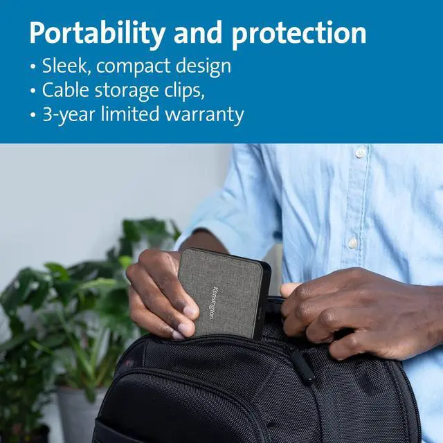 Pioneering innovation with one of the first mobile USB4 docking stations, Kensington proudly presents the MD120U4 USB4 Portable Docking Station. It delivers all the power of USB4, including Dual 4K* support, up to 40Gbps upstream speed, and up to 100W power pass-through -- in a solution designed to support numerous devices and operating systems. An ideal choice for hybrid workers who want to travel with less weight and clutter, power pass-through eliminates the need to travel with an additional power brick, and a variety of productivity ports eliminates the need for additional adapters.