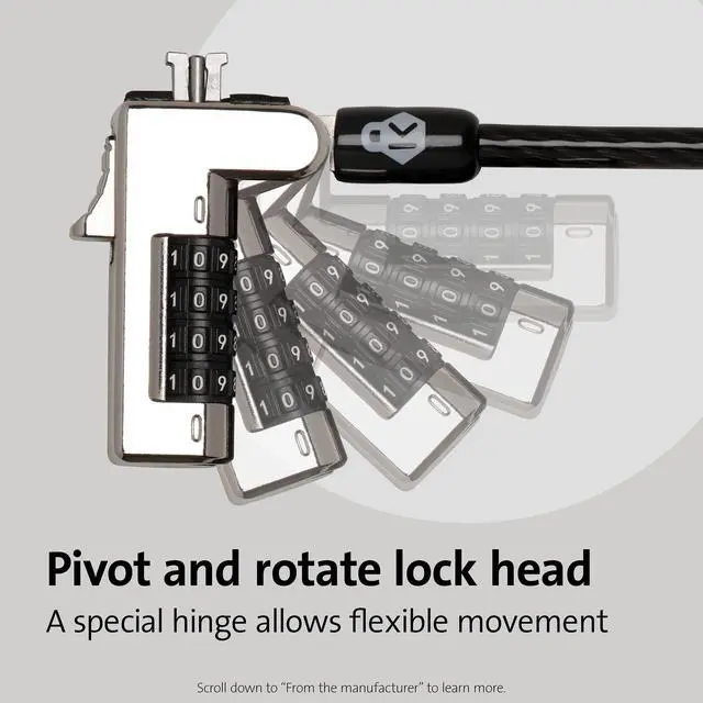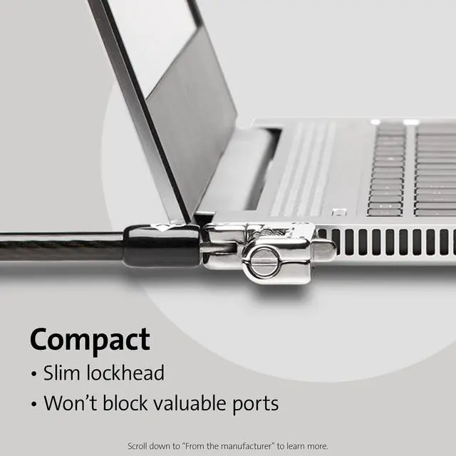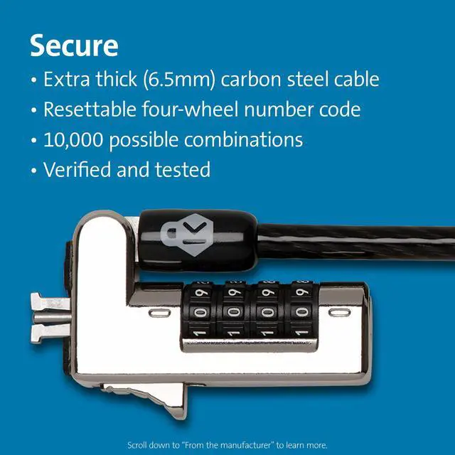 Ideal for thin laptops with a nano slot, the Slim NanoSaver Combination Ultra Cable Lock offers our highest level of protection against cutting attempts, while allowing the laptop to lie flat and stable, and without blocking valuable ports. Extra-thick ( 6.5 mm) six-foot carbon steel cable is sheathed in an anti-shearing plastic sleeve that resists cuts and protects surfaces. Features include a resettable four-number combination; one-handed operation; and Register & Retrieve for quick, secure, and easy combination retrieval. Meets or exceeds rigorous strength testing standards. Five-year warranty. From Kensington, inventor of the laptop cable lock, and industry leader in physical device security for more than 25 years.