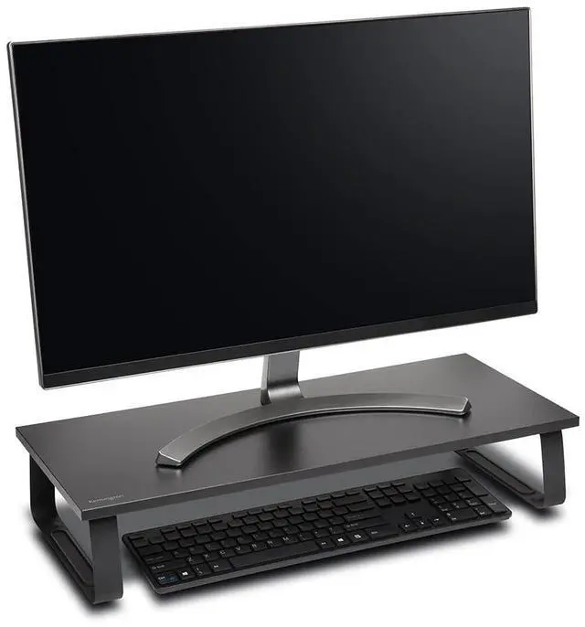 The Kensington Extra Wide Monitor Stand combines a durable and stylish design with the ergonomic benefits of raising your monitor height. The extra wide platform offers an organized working environment with plenty of space underneath to store a full-size keyboard and accessories. The steel base elevates your monitor to an optimal viewing height to promote a healthy posture and increase productivity. An essential monitor riser for modern offices focused on employee wellness. Supports iMac and external monitors up to 32 and 44lbs.