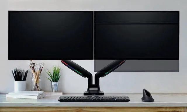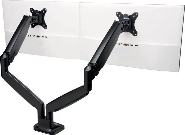 The SmartFit One-Touch Height Adjustable Dual Monitor Arm makes it easy to achieve perfect dual monitor ergonomics (and a neutral, comfortable posture) with its patented SmartFit System and fully articulating design. Tested to meet ANSI/BIFMA standards. depth, and angle effortless from side-by-side to vertically stacked. The products built-in Cable Management System organizes and conceals cables while the arms lift your dual monitors up and out of the way, decluttering and clearing valuable desk space at once..