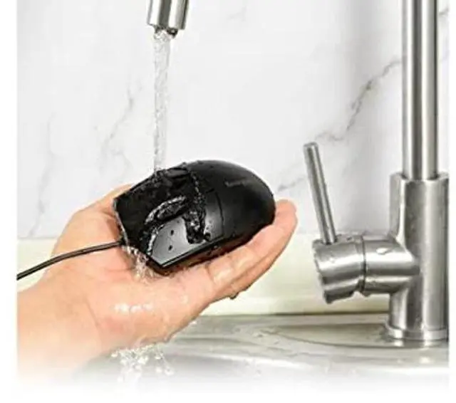 The Pro Fit Wired Washable Mouse, with its waterproof, easy-clean, rugged design, is ideal for maintaining a hygienic surface and cleaning up drips and spills, without sacrificing performance. Comfortable for use with either hand, the wired USB connection delivers reliable performance without the need for batteries. Plug-and-play, so theres no software to download and install. A perfect companion to the Kensington Pro Fit Wired Washable Keyboard (SKU# K64407US). Do not immerse the USB connector.
