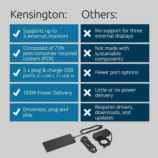 Ideal for professionals requiring a plug-and-play docking solution for USB-C laptops and organizations putting sustainability at the forefront, the SD4842P USB-C 10Gbps Triple Video Docking Station amplifies visual productivity. Aimed at reducing our environmental impact, all the plastic material used in the SD4842P is composed of 73% post-consumer recycled content (PCR). The SD4842P supports up to 3 external Full HD monitors (1080p @ 120Hz) via 1 x DP and 2 x HDMI connections. The dock also eliminates the need for cumbersome adapters, charging connected accessories without relying on a host laptop connection. Expand your screens with an effortless dock that will enhance your workflow and amplify your productivity.