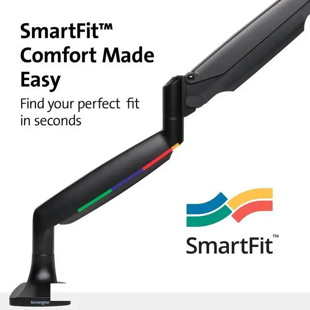 The SmartFit One-Touch Height Adjustable Single Monitor Arm makes it easy to find the proper monitor height (and a neutral, comfortable posture) with its patented SmartFit System and fully articulating design. Tested to meet ANSI/BIFMA standards. depth, and angle effortless from landscape to portrait mode. The products built-in Cable Management System organizes and conceals cables while the arm lifts your external monitor up and out of the way, decluttering and clearing valuable desk space at once..