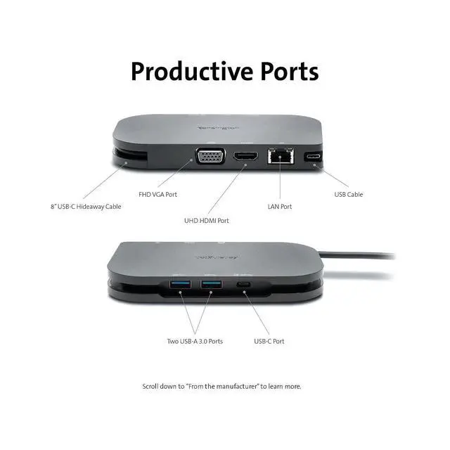 Kensingtons SD1610P USB-C Mobile 4K Dock with Pass-Through Charging was designed for Microsoft Surface. Users can expand their mobile or desktop setup to include a full HD (VGA) or 4K (HDMI) display and connect and charge their favorite USB accessories. Whether in a temporary workspace or a conference room, the SD1610P keeps users productive and powered up. Built on USB-C technology and Power Delivery 3. 0, users can connect with confidence to Microsoft Surface Go, Microsoft Surface Book 2, Microsoft Surface Laptop 3, Microsoft Surface Pro 8 and 7 and Microsoft Surface Pro X knowing the SD1610P will let them expand their workspace, use their favorite accessories, and power their Surface at the same time.