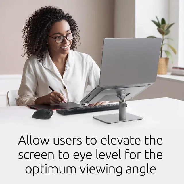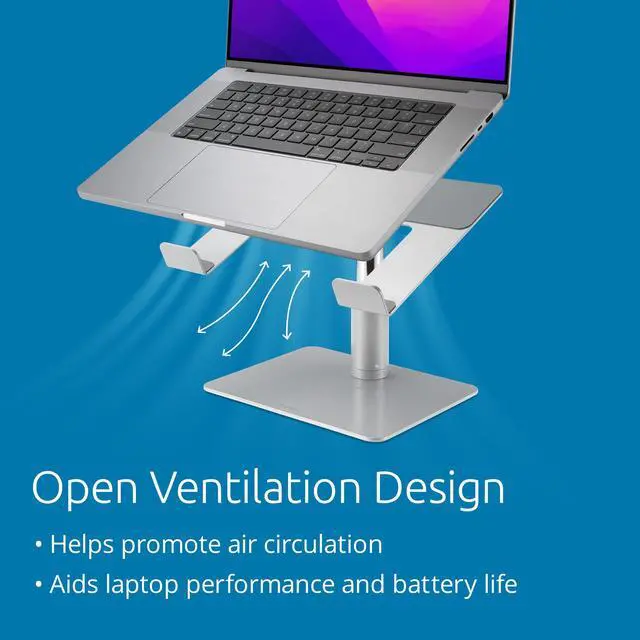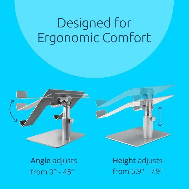 As accessories add up on the desktop, space becomes a premium, especially when you add a laptop. With the Universal Tabletop Laptop Riser, you can raise your laptop to a comfortable viewing height, while also cutting down on desktop clutter. Constructed of durable steel and aluminum, this sturdy laptop riser supports any size laptop up to 16. Stepless design means no tools are needed to quickly adjust the height anywhere between 5.9 and 7.9 or tilt the angle from 0 to 45. Ample storage underneath lets you stow an external keyboard, input devices, or other peripherals.