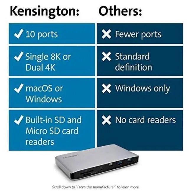 The SD2500T Thunderbolt 3 and USB-C Dual 4K Hybrid Nano Dock with 60W PD - Win/Mac is the perfect, ultra-compact, full-featured Thunderbolt 3 laptop docking station. Features include universal compatibility, Single 8K or Dual 4K video output, 60W power delivery, UHS II SD 4.0 card readers, free Kensington DockWorks software. Its the ideal laptop docking station for a productive workplace.