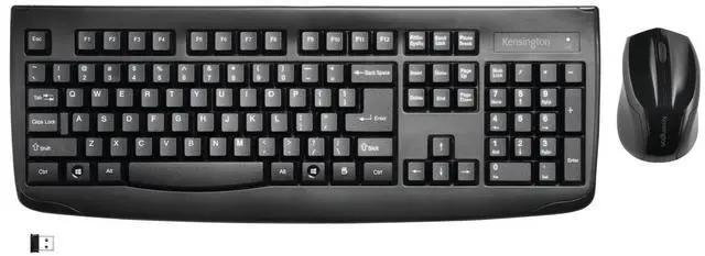The Kensington Keyboard for Life Wireless Desktop Set provides everything you need to turn your workstation into productivity central. The wireless keyboard features a thin sealed membrane that repels water and other liquids, keeping the wiring safe. It's full size with 6 rows including a numeric keypad, giving the touch typist a professional experience. The wireless mouse has a high definition 1000 DPI laser sensor, letting you move the cursor around your screen with precision control. The two-button, scroll wheel design is highly intuitive and works equally well for both right-handed and left-handed users.