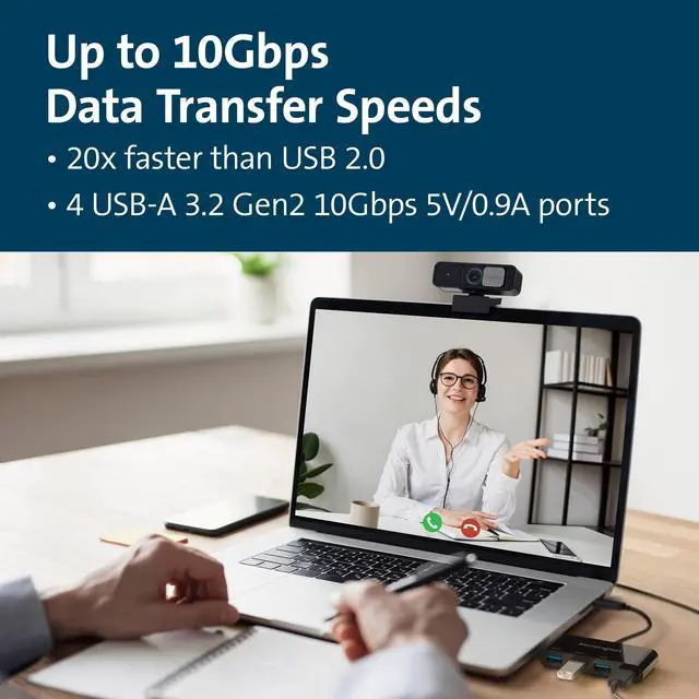 For professionals struggling to find enough USB-A ports to connect their desktop accessories, the CH1200 USB-C 10Gbps 4-Port Hub is an ideal solution. Perfect for connecting up to four USB-A accessories, such as thumb drives, headsets, mice, and keyboards, to a USB-C port on a laptop or docking station, the CH1200 USB-C 10Gbps 4-Port Hub provides up to 10Gbps data transfer speeds in a portable and compact hub. Enhancing productivity with a simple plug-and-play solution, the CH1200 USB-C 10Gbps 4-Port Hub is a convenient accessory for connecting USB-A devices to a USB-C port.