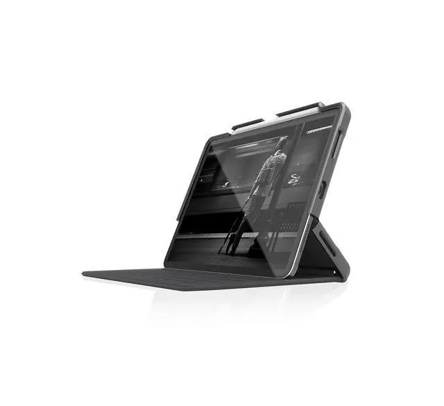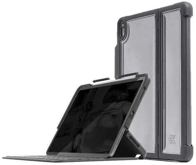 A new generation of Dux shell that protects and works with 2018 iPad Pro and Smart keyboard Folio. This is a rugged case, designed to protect your tablet, store the Pencil, and brave the bumps of everyday life. Works seamlessly with the newly design Apple Smart Keyboard Folio; and features built-in storage and protection for the Apple Pencil in a fitted Channel. Boasts a super protective polycarbonate and rubberized TPU bracket for even the most accident prone, and includes a translucent back allows for user customization or Easy asset tagging for schools and businesses.