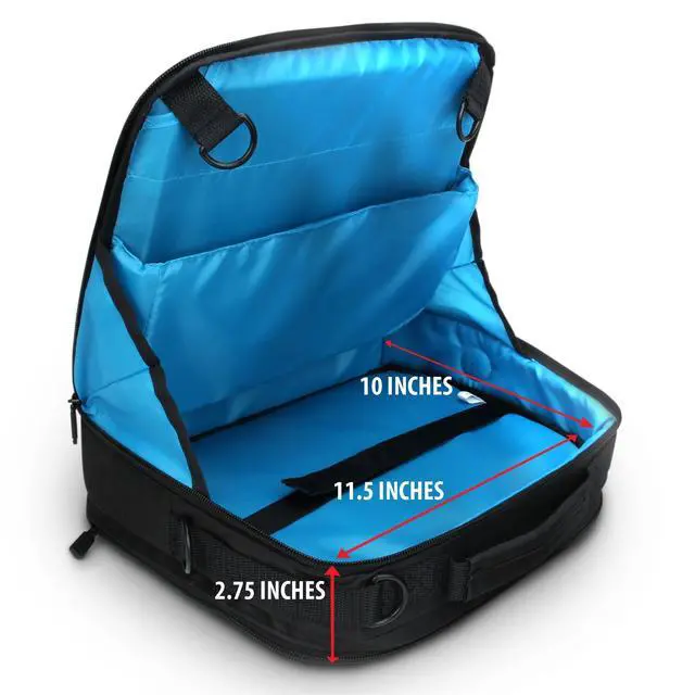 INTERIOR DIMENSIONS: 11.5 x 10.0 x 2.5 inches ^^^^ **CASE ONLY, DVD PLAYER AND ACCESSORIES NOT INCLUDED**
