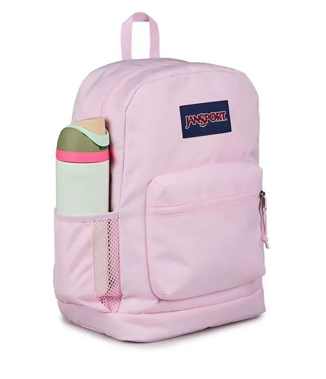 JanSport Cross Town Plus Backpack - Large Main Compartment, Side Water Bottle Pocket, 15-Inch Padded Laptop Sleeve - Pink Ice