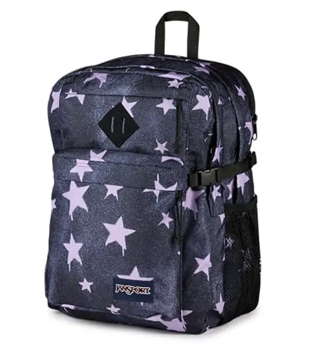 JanSport Main Campus Backpack - Travel or Work Backpack with 15-Inch Laptop Sleeve and Dual Water Bottle Pockets, Sprayed Stars Pastel Lilac