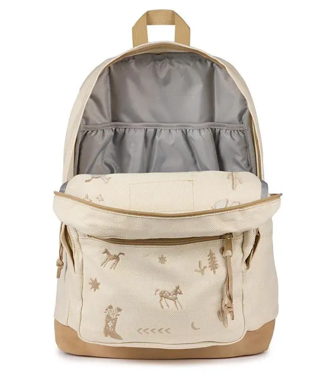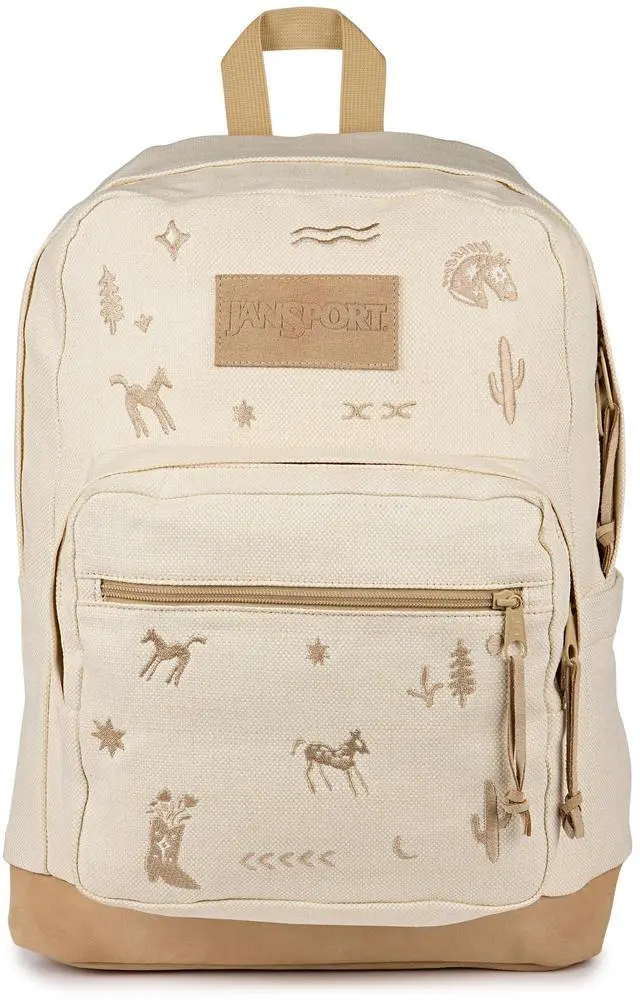 JanSport Right Pack Expressions Backpack Main Compartment, 15-inch Padded Laptop Compartment, Side Water Bottle Pocket, Utility Pocket with Zippered Rain Flap, Yehaw And Horses Emb Tan