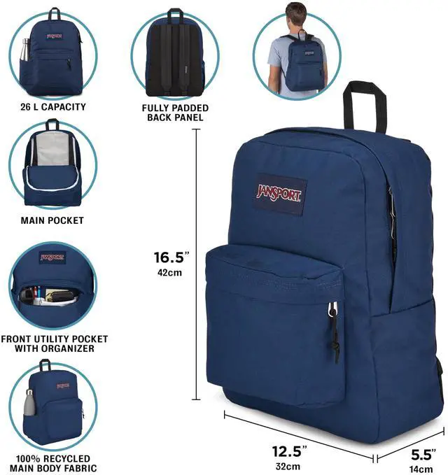 DescriptionSimplify your day with a backpack that keeps up with everything you do. The SuperBreak Plus Backpack combines the look you love with upgraded features designed for life on the go. The spacious main compartment holds books, clothes, or travel gear, while the 15-inch padded laptop sleeve keeps your device protected and ready when you need it. Organization is effortless thanks to the front utility pocket and built-in organizer panel that store your chargers, pens, and small accessories. The side water bottle pocket helps you stay hydrated whether youre heading to work, or traveling.