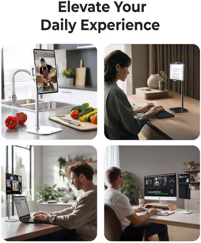 POSSIBILITIES: The Ipad Stand for Kitchen recipes, Zoom meetings; the Ipad Tripod Stand for desk for dual-screen trading setup; this Portable Monitor Mount has 360 rotation to switch portrait to landscape in seconds ^^