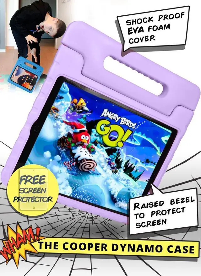 The Official Cooper Dynamo Case: Unparalleled child-proof iPad Pro 12.9 case; resilient EVA foam, shockproof, drop-proof, with a raised bezel for screen safety; screen protector included; vibrant colors for kids ^^ Tailored iPad Pro 12.9 Case for Kids (1st/2nd