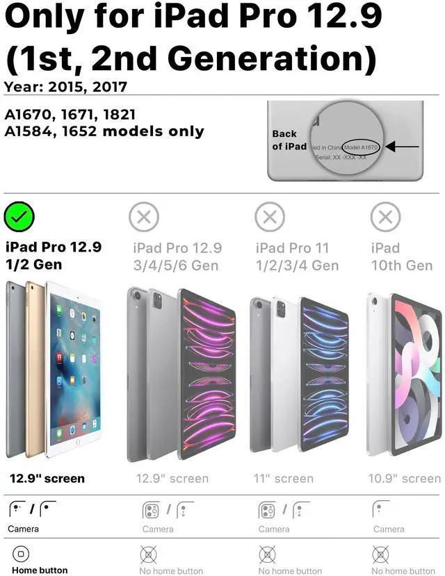 Avoid Return Hassles: This tablet case only fits iPad models, A2462 A2069 A2229 A2232 A2233 A1876 A2014 A1895 A1983 so please check model # at the back of your iPad to confirm