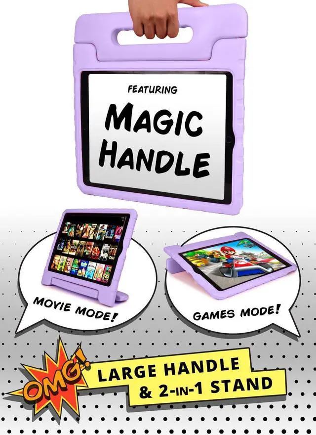 Multifunctional Design: Incorporates a large, grip-friendly Magic Handle for limited mobility that converts into a 2-angle stand; integrated pencil holder; full access to all buttons, ports, and cameras ^^ USA Certified, Safe