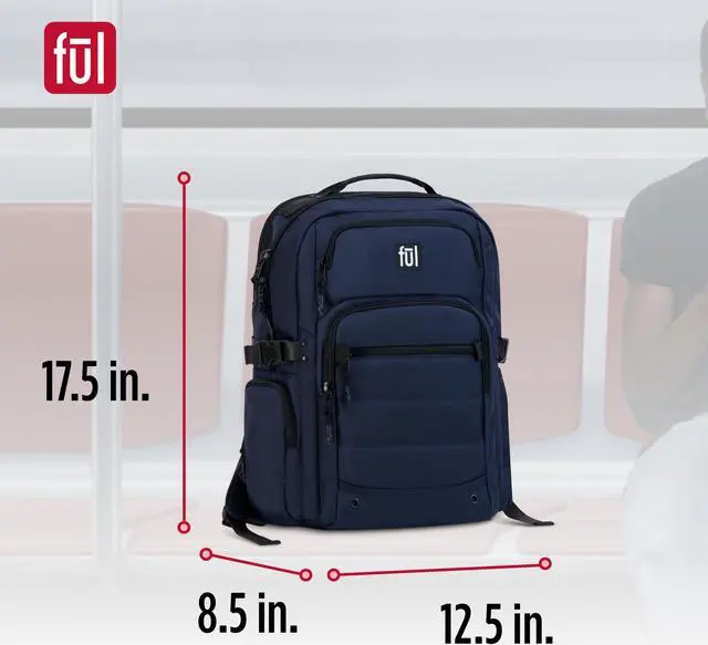 This bagpack features ergonomic and adjustable shoulder harness straps which can be adjusted from 22 to 36 inches drop, a sternum strap to help reduce fatigue, a rear strap for stacking the adult backpack on your luggage, a loop for holding glasses on shoulder straps, snap hook for securing items to the bag, and a top carry handle with a 1.5 inch drop. Constructed with strong heavy duty 1680D ballistic weave fabric for long-lasting reliability, our back packs also feature soft polyester interior to protect your stored personal items. This business backpack measures 17.5 H x 12.5 W x 8.5 D in inches.