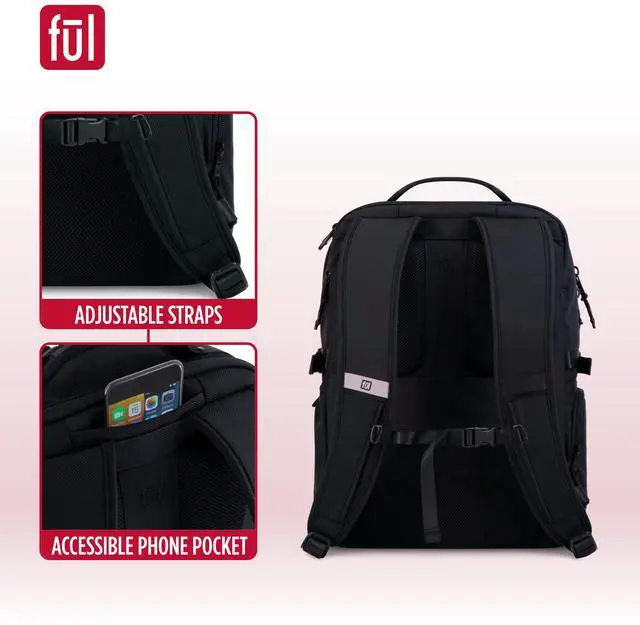 Keep all of your accessories securely packed and easily accessible while on the go with the Tactics Collection Laptop Traveling Backpack. This commuter backpack features a large main compartment for packing your personal items, compression straps to compact the load, and 3 front zip pockets, one of which features an internal organizer for pens and other small accessories. This backpack for laptop computers also features a quick access cell phone pocket, a right side pocket for storing a water bottle or umbrella, and a left side zip pocket to store your phone and cord pass-through for phone charging.