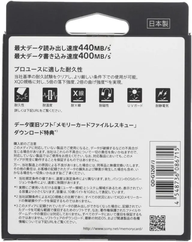 Designed for professional photographers and videographers, the 120GB G Series XQD Memory Card from Sony is made to excel in high-end DSLRs, including models from Nikon and Sony, and offers a storage capacity of up to 120GB. Equipped with a PCIe 2.0 interface, this XQD card features read speeds of up to 440 MB/s and write speeds of up to 400 MB/s, allowing it to record 4K video and up to 200 continuous raw still image bursts.