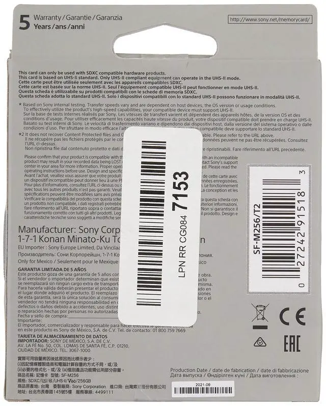 The Sony UHS-II series of memory cards maximizes performance of high-end and profession UHS-II compatible cameras. With UHS-II compatible cameras, Max read of 277MB/s and max write of 150MB/S2, providing excellent performance in 4K video shooting and continuous burst mode shooting, with super-fast transfer to