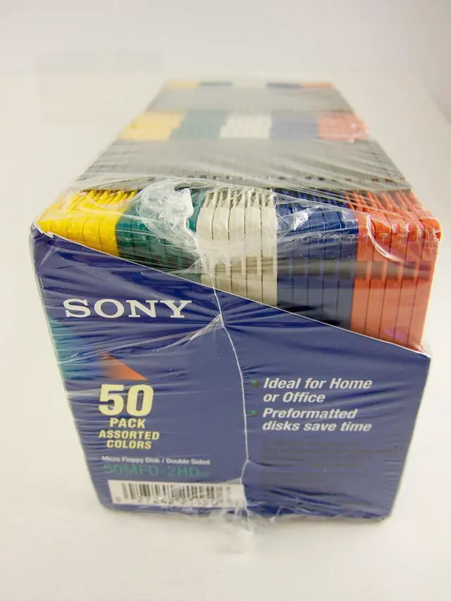 50 Pack Sony Floppy Disk Diskettes 3.5" MFD-2HD Assorted Colors IBM Formatted