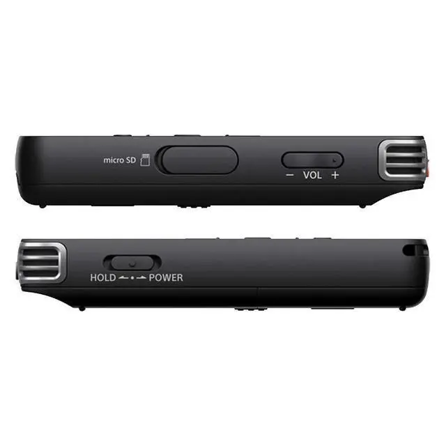 SD card slot: The ICD-PX470 has 4GB of internal memory. When recording MP3 files at 128 kbps, this means a maximum recording time of 59 hours and 35 minutes. The storage capacity can be expanded with a microSD card with up to 32 GB of additional storage. This equates to more than 536 hours of recording time (microSD with 32 GB, MP3 files at 128 Kbps). With the calendar search, you can quickly find the right file: because the recordings are marked with the date, you can easily find the files you are looking for. Simply access the calendar and scroll through each day to find the recording you are looking for. The high-pass filter eliminates unwanted noises: low-frequency background noise can be filtered out via the high-pass filter when recording. Unwanted noise sources such as projectors, traffic or wind are filtered out of the recording, so that the voices are better understood during playback. Recording and playback in Linear PCM or