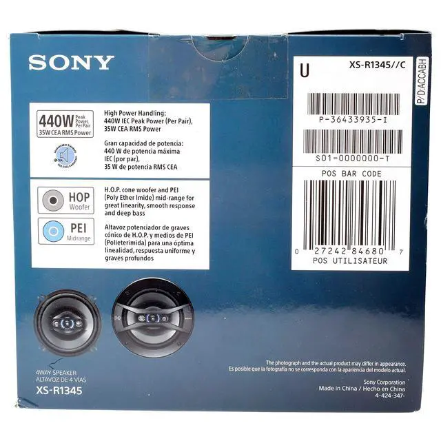 The Sony XS-R1345 5-1/4" 4-Way Car Speaker is an upgrade speaker for your existing car audio system. Featuring a HOP woofer cone, this speaker offers clear and precise sound waves. The piezo dome tweeters help to deliver excellent power handling at high frequency levels to reproduce music as it was meant to be heard. The Sony Car Speaker offers high performance and can handle a maximum power load of 220 watts.