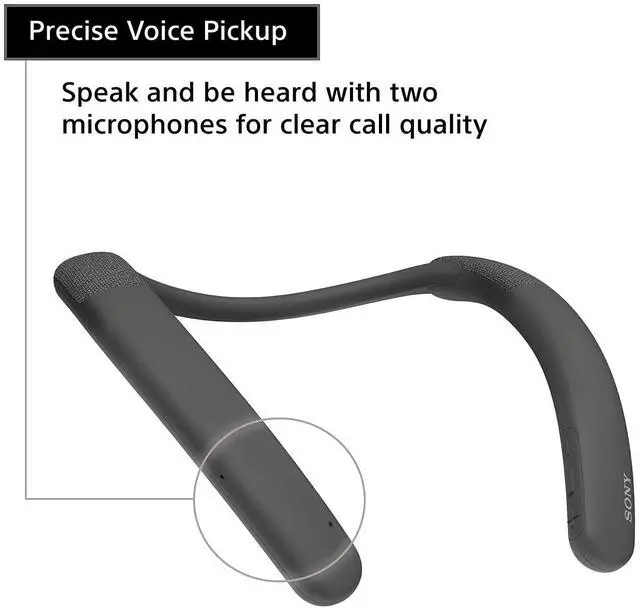 Change how you work from home with the personalized audio of the SRS-NB10 Wireless Neckband Speaker. Simply place the speaker on your shoulders for sound that is optimized for your ears alone. Take work calls and be heard with the integrated microphone powered by Precise Voice Pickup Technology.