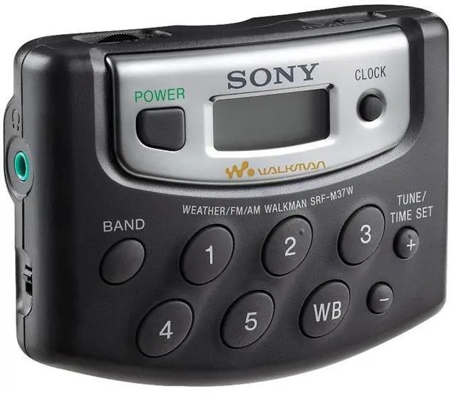From the ManufacturerListen to the weather or your favorite radio stations in clear, stereo sound and enjoy 20 station presets with this Walkman digital tuning weather radio. Not only does the Sony SRF-M37W Walkman digital radio run for hours on just one "AAA" battery, it also features five handy Direct Key Preset Memory buttons that jump straight to your favorite stations no matter what frequency you're in. There's also a digital clock and battery life indicator plus Weather Band Tuning Function for the latest local forecasts. Headphones and a belt clip are included for your convenience.