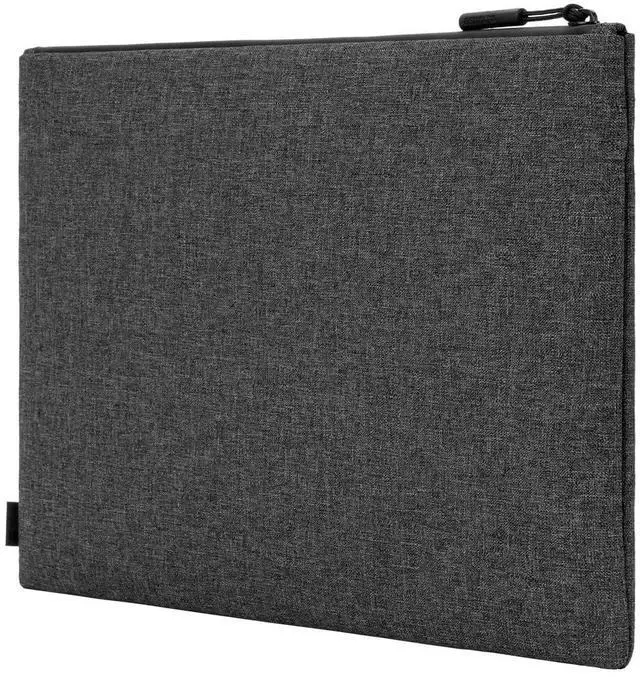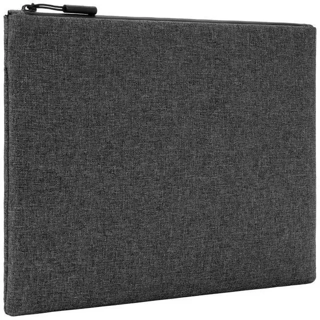 Lightweight and slim, the streamlined design of the Incase Flat Sleeve blends beautifully with the shape of your laptop while providing full device protection. Its sustainability-focused material offers high wear resistance and is enhanced by weather-resistant PU coated zippers and padded interiors. Padded scratch protection for your MacBook; Slim construction; PU coated zippers and custom pullers; Airport security and X-ray suitable; Heather Grey coloring, made with Ecoya, reduces CO2 emissions and uses 89% less water than conventional yarn dyeing methods, also creating a more color-resistant fabric that resists light, water and washes.