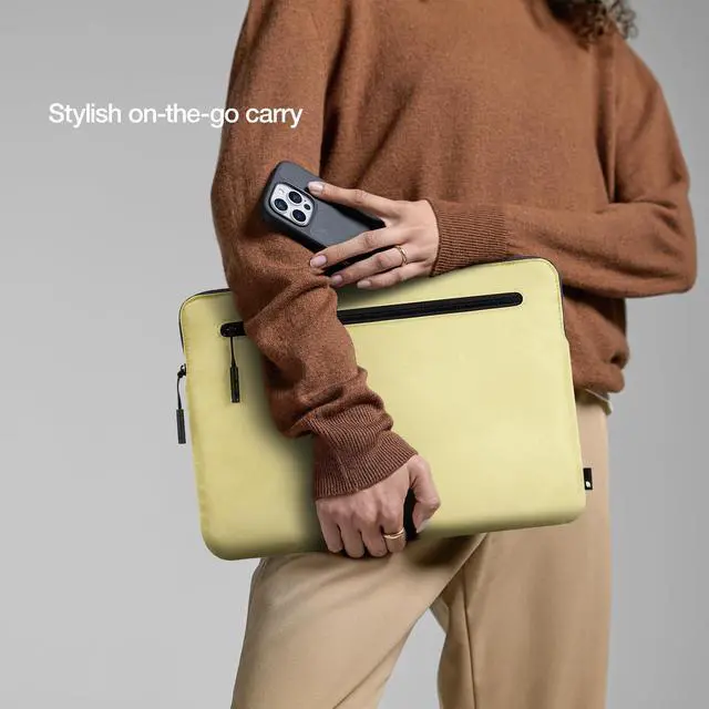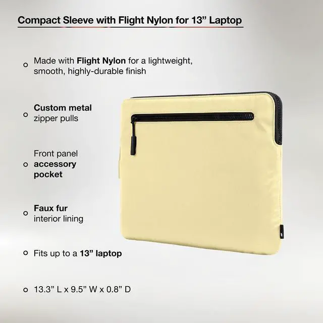Incase Compact Laptop Sleeve with Flight Nylon - 13 inch Laptop Sleeve for MacBook Air - Faux Fur Lining, Lightweight, Durable, Weather Resistant, Slip Pocket for Accessories - Lime Custard